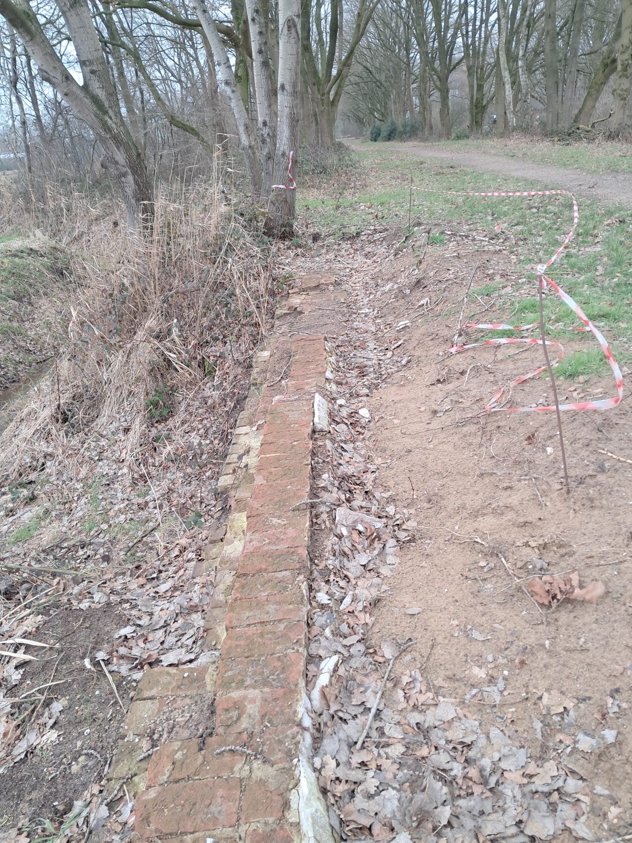 Sinds enkele maanden fungeert op het Duits Lijntje ter hoogte van de Kampse Plas een dun rood-wit lintje als waarschuwing dat achter dat lintje zich een gapend gat bevindt naar een zogenaamde “duiker” van een sloot naar de Kampse Plas. Wat is hier de bedoeling van? Staat er eigenlijk een duidelijke vaste reling gepland en zo ja: wanneer dan? Nu is het wachten op de eerste val door een kleuter of huisdier in het water en/of op de stenen!